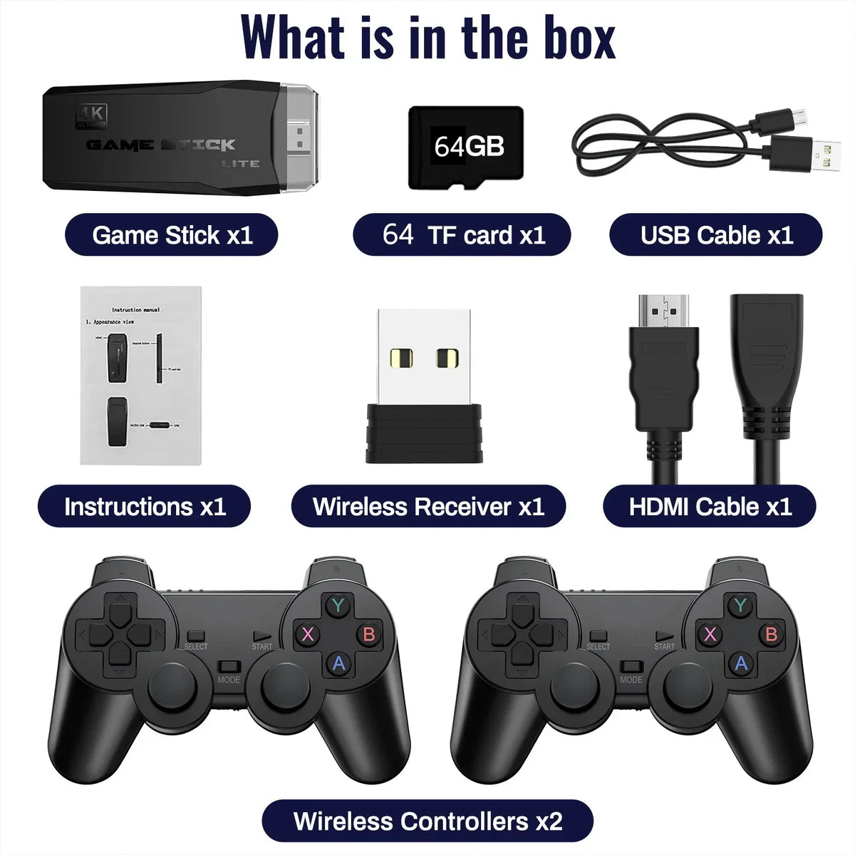 M8 Game Stick 4K Video Game Console 2.4G Dual Wireless - 64GB 15000+ / france