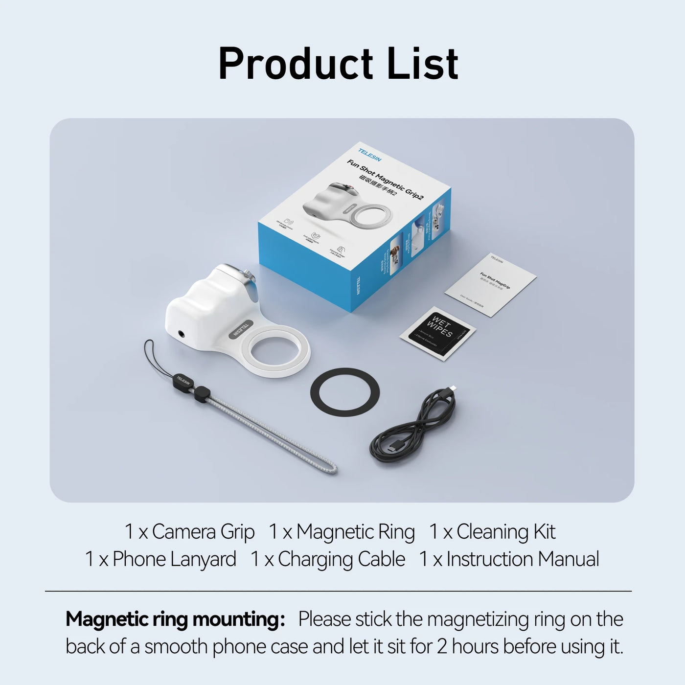 TELESIN Magnetic Phone Camera Shoot Hand Grip Phone Holder Shooting Aid Remote Control Handle for Iphone HUAWEI SAMSUNG Phone - Hand Grip Fill light